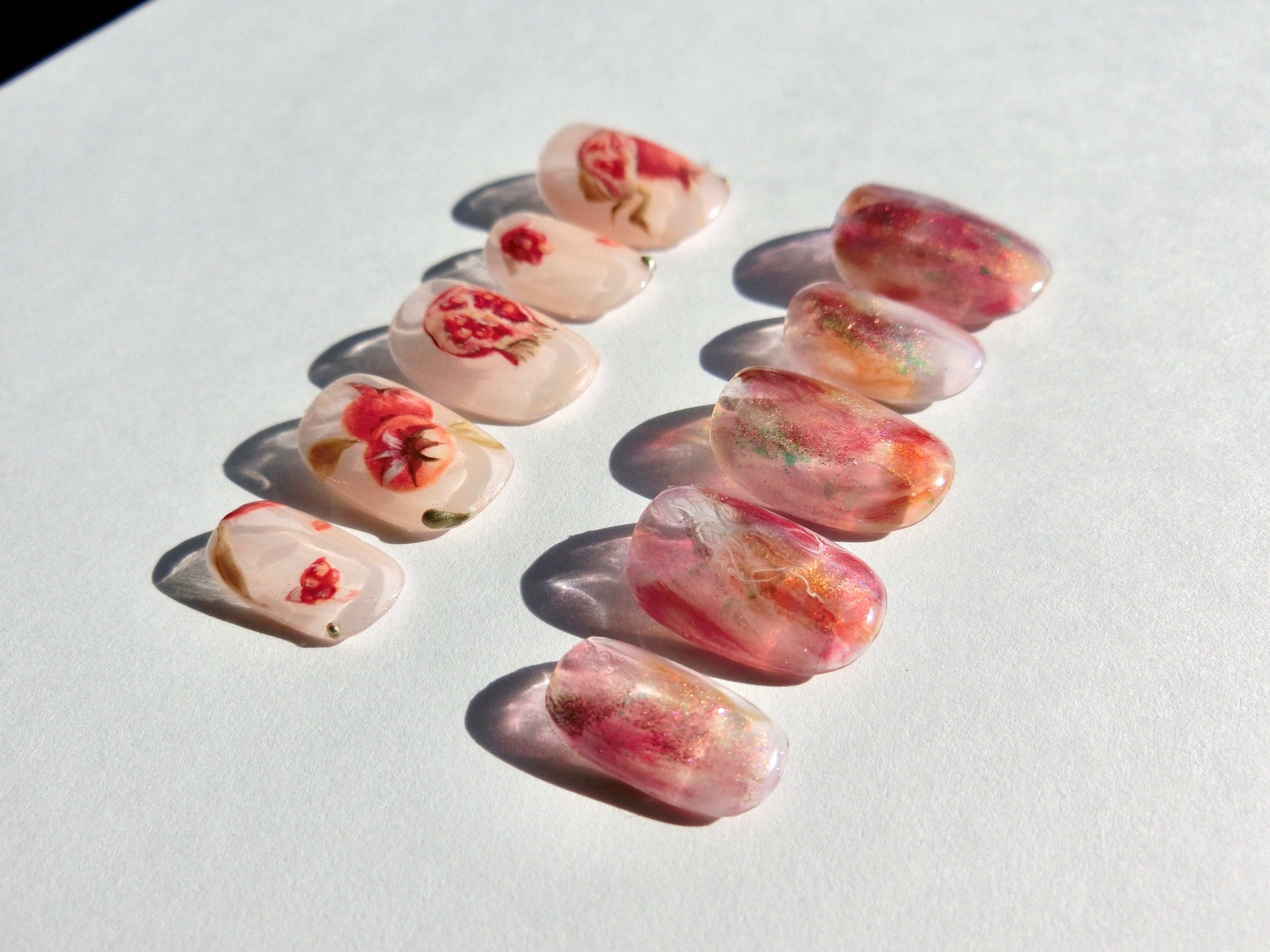 ベースにシアーカラーを使用しているため透け感があります。手書きの商品ですので多少の誤差がございます。お客様のお手元に届きますよう、ひとつひとつ丁寧にお仕上げさせていただいております。