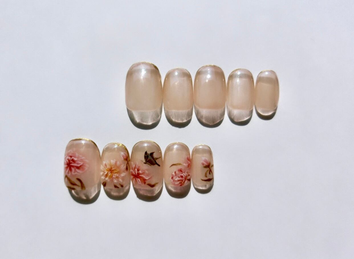 ベースにシアーカラーを使用しているため透け感があります。手書きの商品ですので多少の誤差がございます。お客様のお手元に届きますよう、ひとつひとつ丁寧にお仕上げさせていただいております。