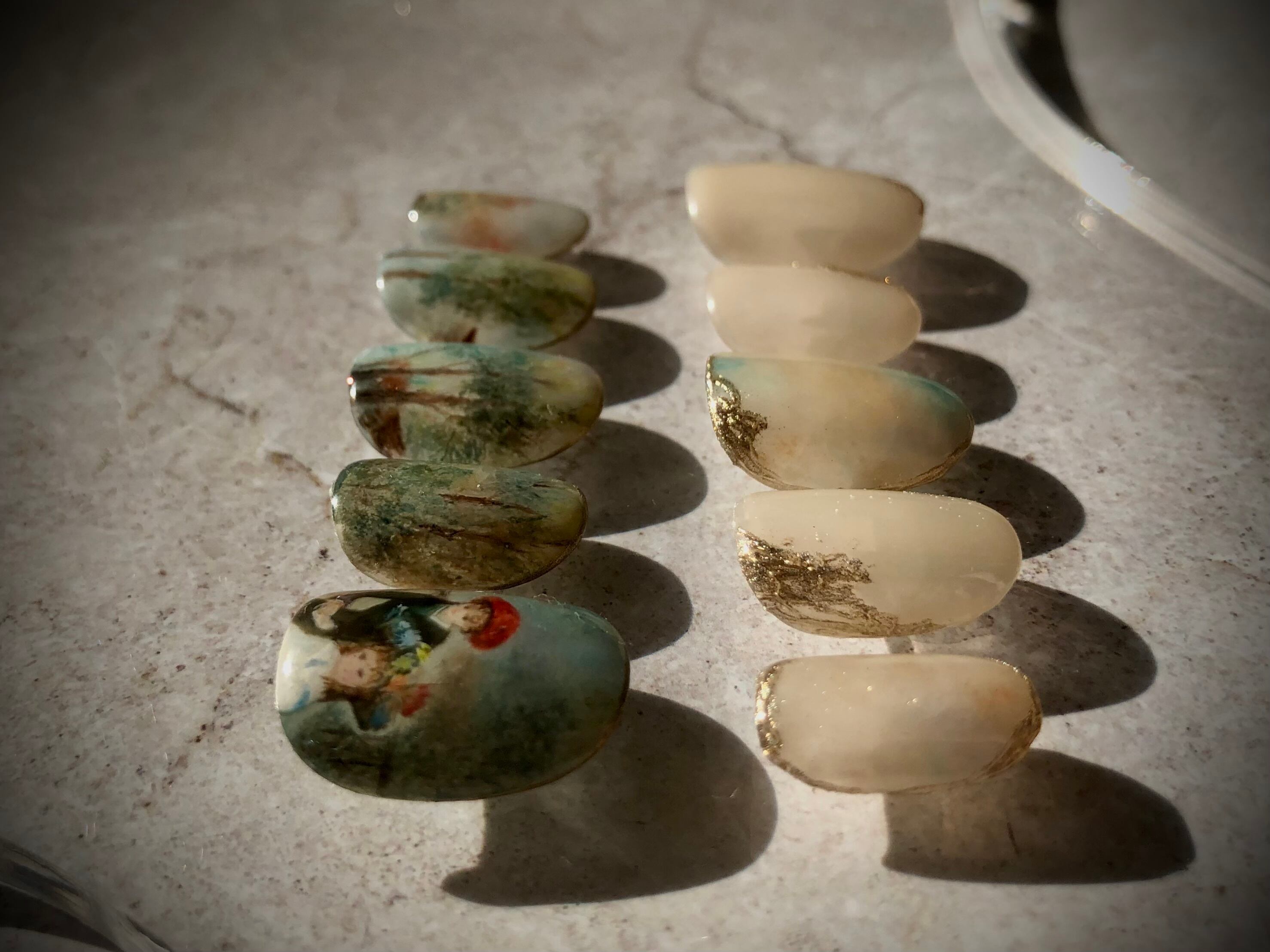 ベースにシアーカラーを使用しているため透け感があります。手書きの商品ですので多少の誤差がございます。お客様のお手元に届きますよう、ひとつひとつ丁寧にお仕上げさせていただいております。